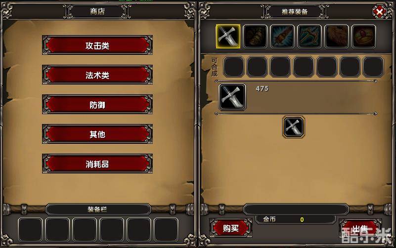 ①在没有足够的金币购买装备时,可先购买该装备的合成道具,逐一进行合成;