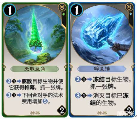 然后是神器,这里只有两张,应该算是神器界的大哥二哥了,【无暇圣角】和【碎星锤】。只要有满编就行了。