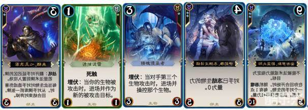 然后是生物,【基础型喀拉诺】,【预示猫头鹰】,【塞瑞亚前哨】【法典蠹虫】作为优质单卡填充曲线,【阿格玛鲸骨猎人】214的身材,受到攻击伤害可以冰冻对方,再不济也可破帷幕,完美契合主题,本身2费还有埋伏很好用,满编;【咏春独角兽】技能效果是一点费用回复三点生命值,我们大都是大屁股生物,还是很有作用的,1~2微调。【云端的歌姬】曾经我以为他在整个冰冻体系的作用是无可替代的,后来发现还是想的不对,314空军身材倒是还可以,大屁股也让他更好的存活,但是在冰冻体系中设计的核心【伊莉雅,冬拥龙语姬】都冷板凳其实很多东西关系引人深思,不过这个卡组可以看到是以生物为主的卡组,当然主要也是目前的法术很难用出来,环境会好一点,但是效果依旧不是那么的好,建议1~2即可,这里我只有一个。【冬拥真言士】324的身材还算不错,两个技能效果,看似无比美好其实没什么具体效果,带一张怀揣希望吧。【冰沼水灵】核心卡,凭借这套卡的其他冰冻效果具有很强的成长性,我这一脚下去你可能会死的杰出代表。毫无疑问满编。