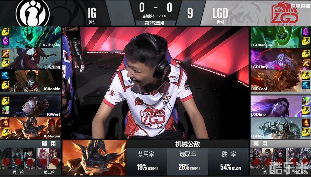 LGD对阵IG的比赛火热进行中,这一局LGD的上单选手Banana得到首发。