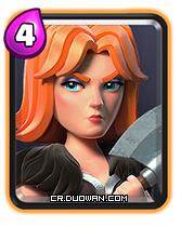 常见玩法:女武神属于偏范围输出的战士类兵种,卡牌需要4点圣水(中低费用),使用上能够克制很多敌军。这张卡在防守上由于具备高生存和AOE优势,所以在对抗敌军人海兵种时优势会很大,当敌军打出类似野蛮人或者团伙类卡牌时,能够有效克制。同时自身的生存能力很高,对手使用组合推进时,对于后排常见的女巫和法师类兵种也是能够有效切断。女武神的目标为地面,会被敌军空战卡克制。