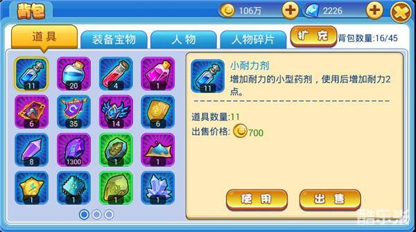点击道具icon,可查看详细信息。 选择使用或者出售