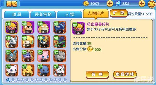 收集足够碎片即可进行合成,还能查看角色详细属性