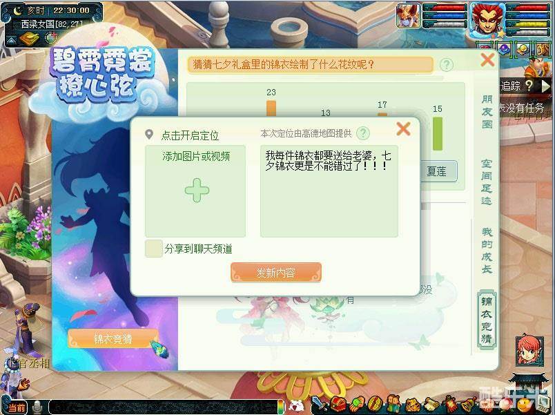 就在上周,大家翘首以盼的七夕限量锦衣礼盒还披着神秘的面纱,免单的福利就已经开始了。不管是通过对锦衣竞猜专栏里的爆料图进行竞猜,还是通过游戏个人空间发表带有#一万个买锦衣的理由#话题的动态内容,亦或者为其他朋友的动态点赞,均能参与抽奖。