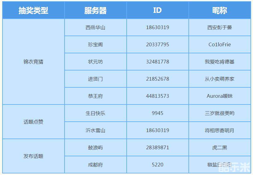 活动已经结束,恭喜以下9名玩家获得“云龙梦”七夕礼盒免单奖励,获奖玩家购买七夕礼盒后,将获得消耗的3600点游戏点数返还。