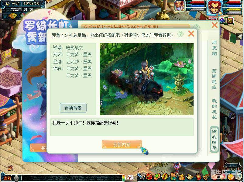 活动期间,各位玩家可前往宝象国(55,39)七夕仙娥处购买礼盒。不仅如此,云龙梦七夕礼盒内的锦衣(头饰、上下衣、光环、足迹)均可以进行自定义染色和特殊染色。赶快来抢购云龙梦七夕礼盒,秀出你的风采,也秀出你的特别。