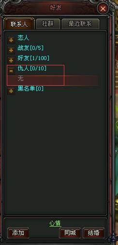 3.“仇人”栏只记录该玩家的角色名,不记录其他信息。