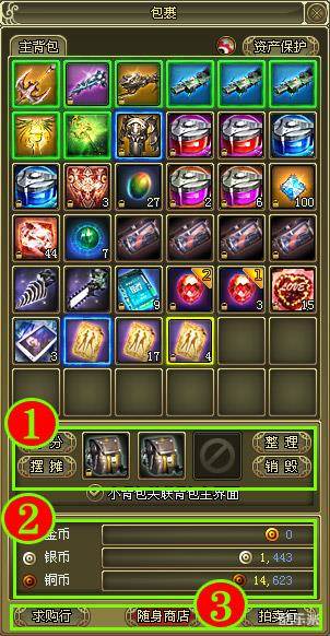 3、第三区域为便捷功能区,包括:求购行、随身商店、拍卖行