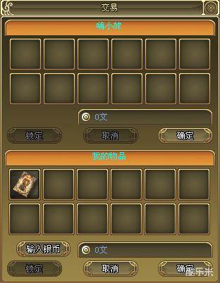 将需要交易的物品从包裹拖入“下方”交易栏内,然后点击“输入银币”按钮,确定交易金额。“上方”交易栏为交易对方所放入的物品和交易金额。