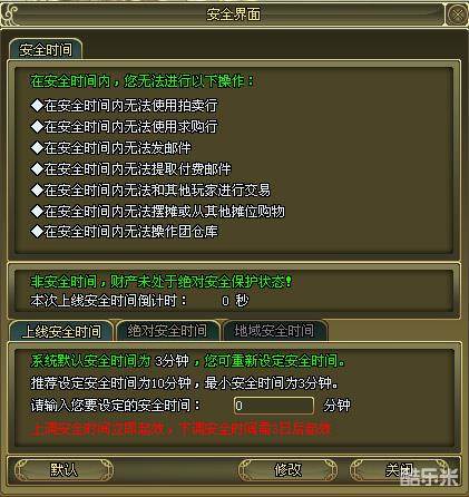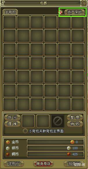 为了保护玩家的利益不受损害,玩家可以自行设定财产保护来保护自身的钱币、装备等的安全。