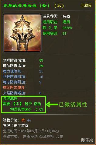 激活灵魂属性,对于装备不但需要装备了正确的部件,还需要该部件五行属性符合条件。