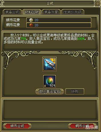 材料是生产制造的基础。制造高级药材和高级的魔道器需要高级材料。那么,材料怎么样才能提高等级呢?这就需要把材料合成。想要得到更高等级的材料,必须将低等级材料进行材料的合成。合成就是把相同种类、相同等级的材料放入材料合成界面合成为更高等级的材料。