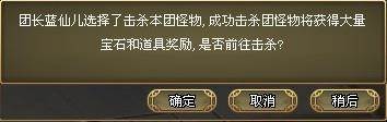 4.只有蓝色或蓝色以上品质的团BOSS可以被猎杀,且只有团长可发布“猎杀BOSS”,团长点击“猎杀BOSS”后,出现确认对话框,点击“确认”则正式发布猎杀团BOSS: