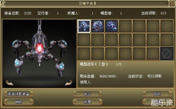 击毁收回 | 团魔甲被击毁后自动收回,此时该团魔甲已损坏,修理后才可使用 | |