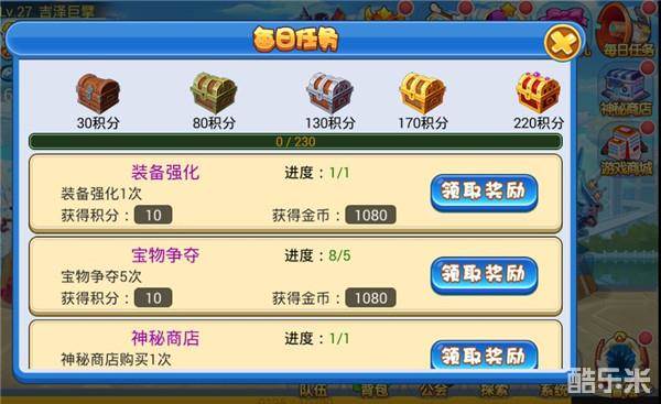 每天完成指定的任务和次数后,即可领取奖励和对应积分