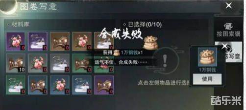 采集到“灵感”之后,少侠们就可以进行灵感写意啦。按照一定的比例搭配“灵感”才能成功合成珍贵图纸,用于家具制造。所以如果玩家看上了哪个家具,可以提前查看它合成所需要的图卷,然后进行采风与写意,绘制图卷。