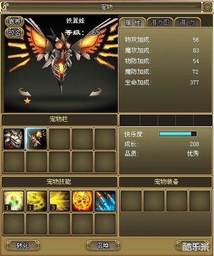 潜力:潜力值直接影响宠物给角色加成属性的多少。