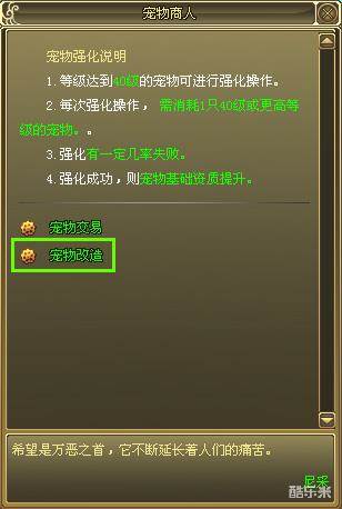 1.宠物强化需前往“宠物商人”处才可进行;