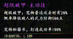 超级破甲:宠物普通攻击时有20%的概率降低敌人的武力防御500点