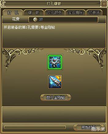 2. 打开装备打孔界面,放入需要打孔的装备和金刚钻,最后点击“开始打孔”按钮。