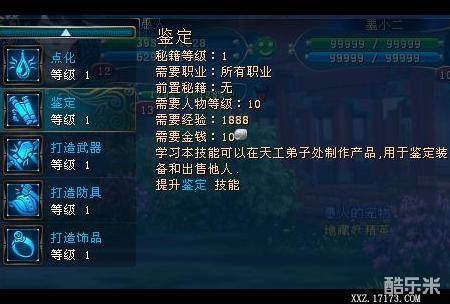 鉴定卷一共3种:武器,防具,饰品。根据装备等级分为1~10档,消耗元气进行生产。
