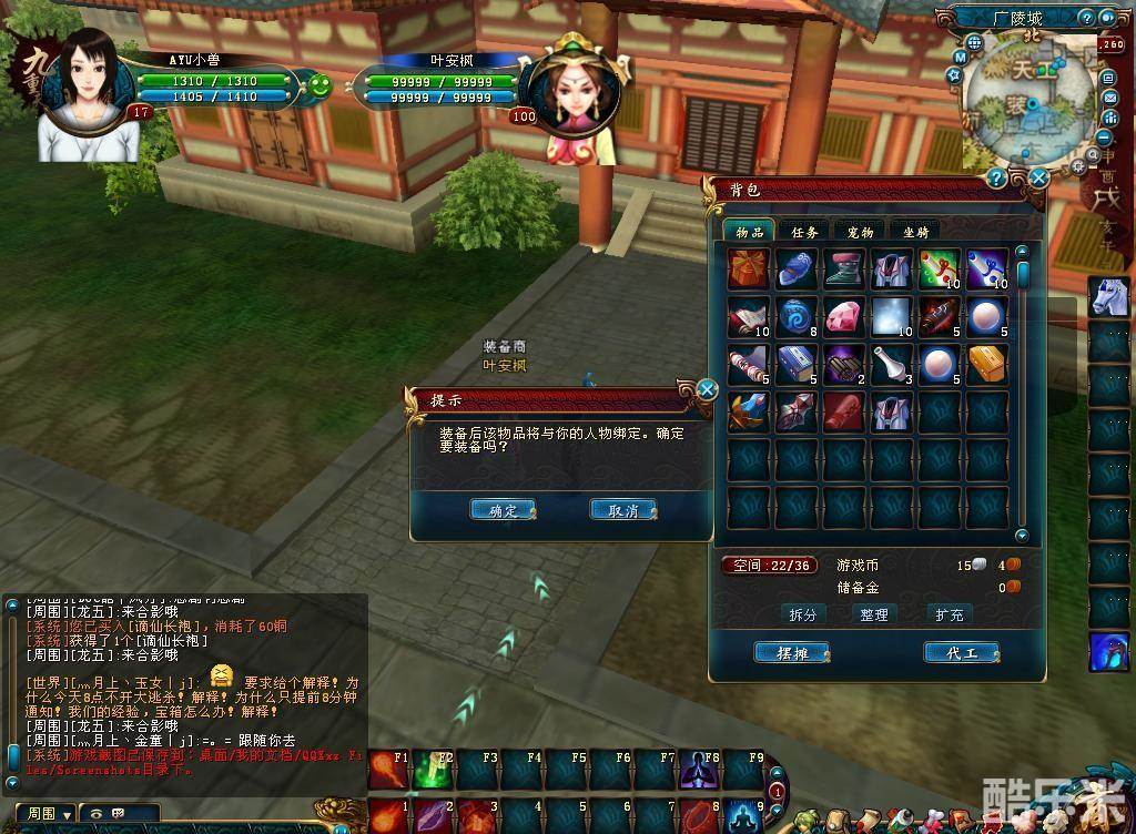 师门任务里会买些武器装备什么的,就顺便补全了一套九重的法系装,右击购买卖,装备时会提示绑定,若将来找到好装备,确认看好自己的职业所取再装备比较保险点。