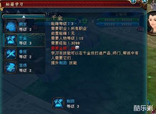 我所需的月草露就是千金坊中,学吧,不过,制造一个月草露需要制药等级9,那个钱啊,经验的升一级超级多,穷~~没办法,先放弃,这个有空开个作坊也是狂赚钱的一种,师门必备。