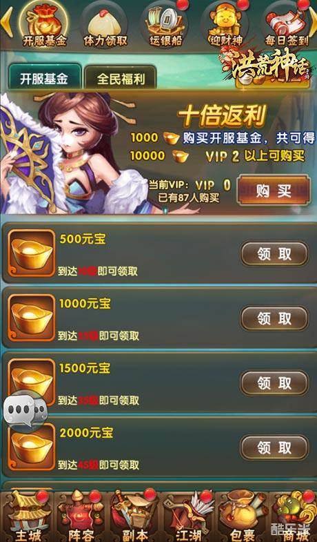 闯荡江湖,怎么能没有“银两”的辅助呢?为了让更多玩家畅快体验游戏,《洪荒神话》准备了超多福利活动,包括等级奖励、开服基金、全民福利、金玉满堂、运银船和迎财神等等。游戏必备的福利活动《洪荒神话》都有,游戏没有的福利活动《洪荒神话》还是有~