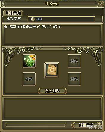 1、玩家到光明城NPC生活技能制造商人(415,423)处对话进行神器合成。