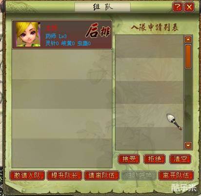 入队申请列表:该处显示提交入队申请的用户名单,队长可选择合适的队员入队。