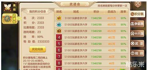 话说古有华山论剑,决战华山之巅;而今,《梦想江湖》有武道大会,擂台一决胜负。武道会采用积分赛和争霸赛两种赛制,其中40级以上的玩家均可参加每周开放两天、每天30分钟的积分赛,在规定时间内,以快速解决每一场战斗,赢得更多积分为目标,按照积分排名决出16强。在确定16强后的当周周六,进行争霸赛,16强采用一对一淘汰制,最终登顶霸主宝座之人可以得到当届赛事的武圣之名。其他玩家在16强时可以进行下注观战,猜对同样有丰厚的奖励。