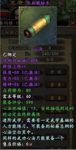 在洛阳又转悠了半小时,突然想起今天多了2000的商城积分,就又兑了松烟墨,拿起仓库里的那个心法口诀去国家广场换了鹿笔,接着跑到冰剑禁地门口,把自己那个智精,-80%回血的点血放上,锁上,嘿嘿,体智精点血!