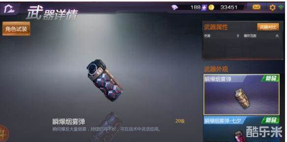 瞬间爆发出普通烟雾弹几倍的红雾,持续时间是普通烟雾的零点几倍。用处比起烟雾弹更小,即使点天赋也难以弥补适合游击战术玩家迅速转移用,不过米战都是小地图,游击也跑不到哪里去