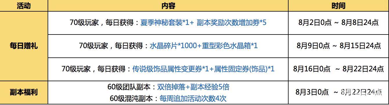 注:“每日赠礼”活动,每个账号每天可领取一次,由首个登录的70级角色通过邮箱领取。