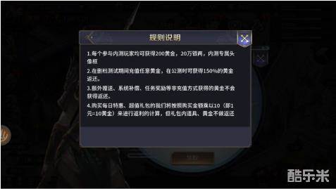 在删档测试期间充值任意黄金,在公测时可获得150%的黄金返利。