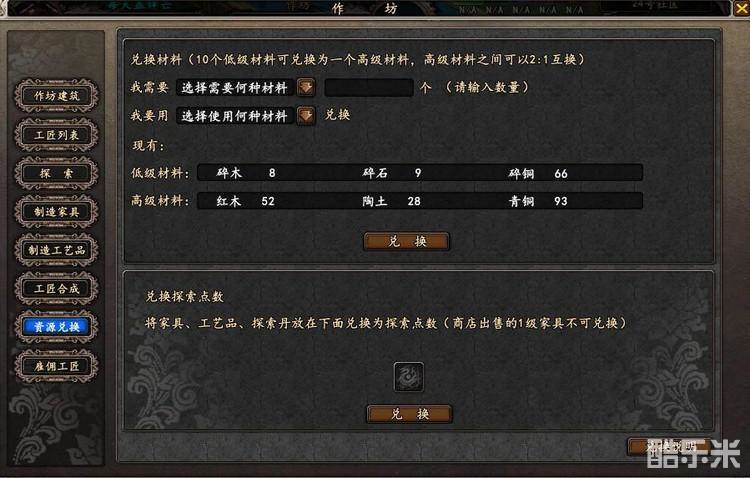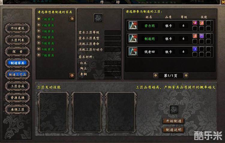 制造家具、工艺品和探索类似,不过制造需要的是材料,消耗工匠的行动力和寿命,而探索则是需要探索点和消耗工匠寿命。制造家具和工艺品也是分为7级。