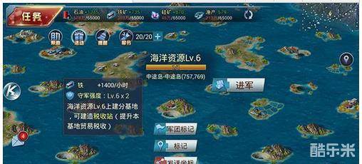 我们来算一笔帐。一个分基地占地9片。升级满资源建筑以后每种资源产量5200.也就是四种资源加起来20400.而9片9级地的资源产量是18000.所以一个建好的分基地比9级地更加有用。而且还提供不菲的军资收入。最终的形态是,1个主基地躲起来别被沦陷。一个建设完全的9级分基地(建设在9级地上的),用来放作战部队。位置最好在资源海域或者本海域内靠近中途岛的地方。剩下8个6级分基地,提供资源和大量的军资。因为建设完成以后对资源需求量的下降,以及征兵时间限制带来的资源使用限制,所以资源并不会太缺。所有产量6万多就可以满足战争消耗,8万就完全够使用。10座城市提供52000资源,军团大概提供1万5资源到2W资源,这里大概7万。加上军团的资源加成,轻松上十万。这里只用了90片土地,还有360片土地可以自由发挥。所以,不要太在意资源的得失,没地就建分基地,后期军资的需求量不是一般地大。