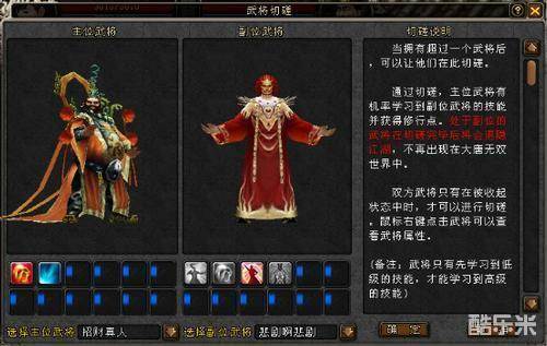 武将切磋可以让主位的武将有几率学习到副位武将的战斗技能。处于副位的武将在切磋完毕后会隐退江湖,不再出现在大唐无双世界中。双方武将只有在休息后才可以进行切磋的。