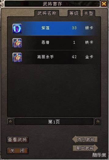 武将寄存拥有仓库的功能,在这里可以免费寄放5个武将,角色可以将身上的武将存入这里也可以在这里取出武将。
