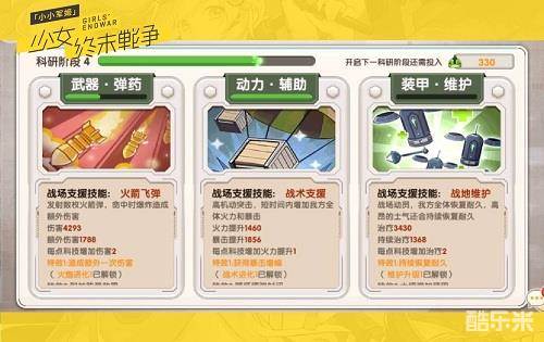科学院:科学院系统是《小小军姬》里非常具有特色的系统,该系统的主要作用是:强化部队的各项能力(如火力、抗性、支援技能等)。司令官可以在科学院中根据自己搭配军姬的类型和追求,强化天赋来为自己的部队提供加成效果。