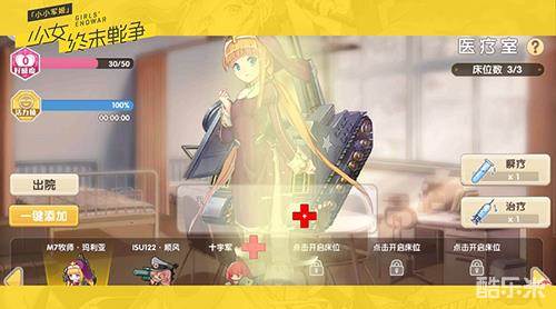 医院:军姬每局对战都会损失一定的活力值,当活力值低于一定程度将无法出战。此时,就需要进入医院进行治疗了。