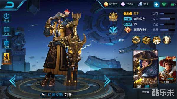 刘备是一个近身输出型射手,他有着出色的近身输出能力,是很多玩家非常喜欢的英雄。刘备上手难度较小,但是战术打法会相对要求较高,他需要在前中期依靠野区进行快速发育,通过其超快的打野速度来建立起优势。对于很多老玩家而言上手难度很低,但是对于一部分新手,可能很难发挥出刘备的战场实力,适合有战局解读能力的新老玩家上手。