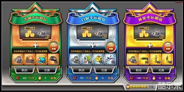 彩盒系统是玩家在游戏内随机获得各种奖励物品的系统,玩家可以通过在游戏内各个地方累积的"勋章"换取兑换彩盒的机会,也可以通过FC点进行购买。