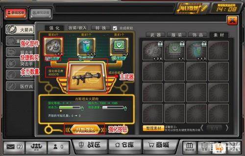 强化功能主要是针对武器装备上的强化功能,玩家可以自由选择不同的装备进行强化。武器、服饰、饰品强化必须使用白色的、时限永久的主武器或近身武器。