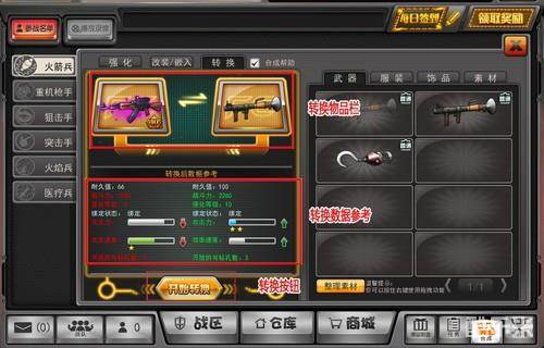 简单来说就是用1个高等级的武器装备和1个低等级的武器装备来进行等级调换,比如火箭兵主武器是1把5级的巴祖卡,突击兵主武器M4是0级,可以把5级的巴祖卡的等级转换到0级的M4上,此功能可以方便不同兵种的武器装备之间的等级对调,需要注意的是在转换的时候可能会出现掉级的情况;还有就是只能同一类型的武器装备才能进行转换,比如主武器只能和主武器之间进行转换,不能和其他非主武器的装备进等级转换。