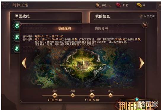 在“荆棘王座”中,玩家代表军团需要占领地图中的矿场,以获得资源。在争夺阶段,玩家可以相互配合攻打其他军团的矿场并占为己有,同时军团成员也需要防备敌方来攻占自己军团所占的资源矿场,提前布防。在活动结束后,获得资源最多的军团将获得胜利,并获得大量奖励。