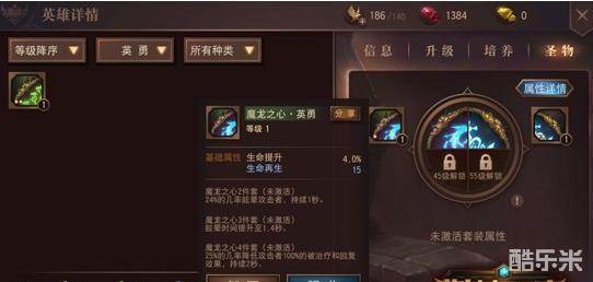 圣物系统同样是本次新测试的英雄系统,每个英雄可以装备四件圣物,其中第三、四件需要英雄等级分别达到45级和55级解锁。初始获得的每件圣物,都拥有一条基础属性和最多四条附加属性,同一个英雄装备多件同名圣物还能激活套装属性,大幅提升英雄各方面能力。