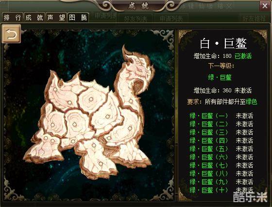 完成同一图腾兽所有部件的升级,可获得图腾兽加成属性