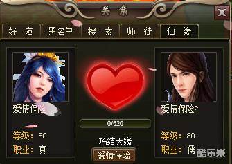 结缘后可以仙缘双方可以购买爱情保险,在关系—仙缘界面上增加了爱情保险购买按钮。