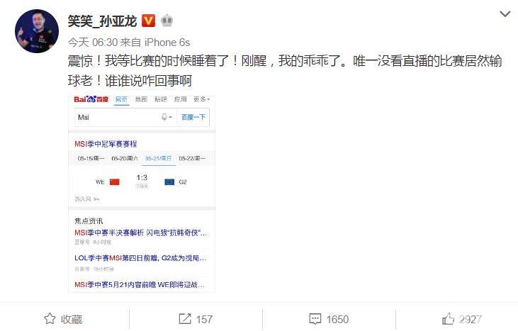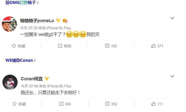 在20日凌晨WE以1-3的比分败给G2后,圈内解说与选手们纷纷在微博发表了自己对MSI的感想,以下是综合整理。